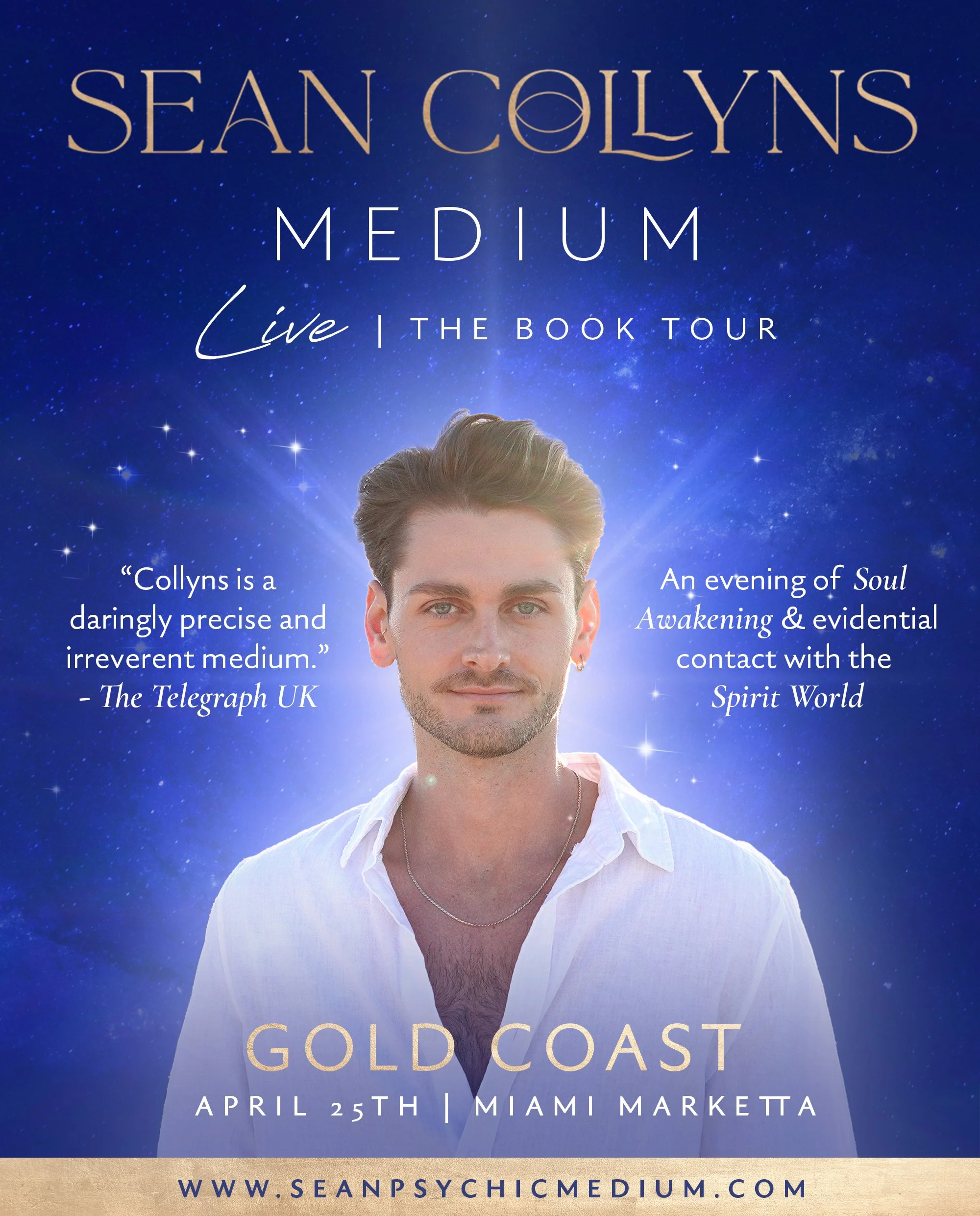 In 2026, Sean will embark on his international book tour, Sean Collyns Medium Live: The Book Tour, with full-scale theatre performances across Australia and New Zealand before bringing the same live demonstrations to the United Kingdom and Ireland. The tour will also include bookshop appearances and speaking engagements throughout the United States.